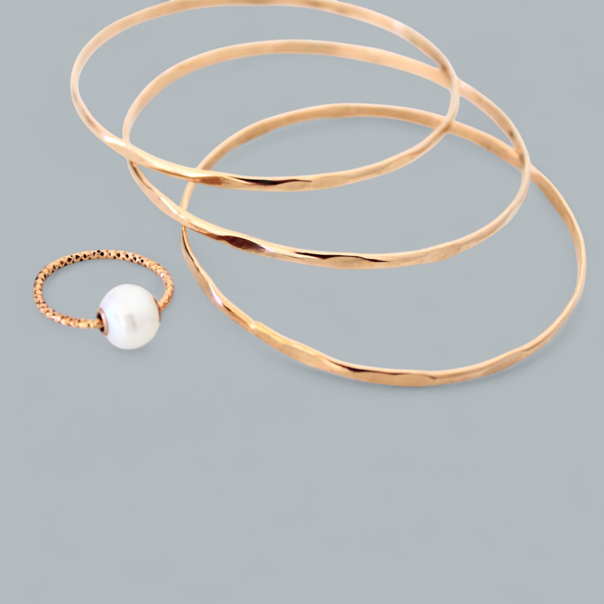 14k gold filled sparkle wire is formed, soldered and embellished with a stunning AAA freshwater pearl that floats freely along the band.
