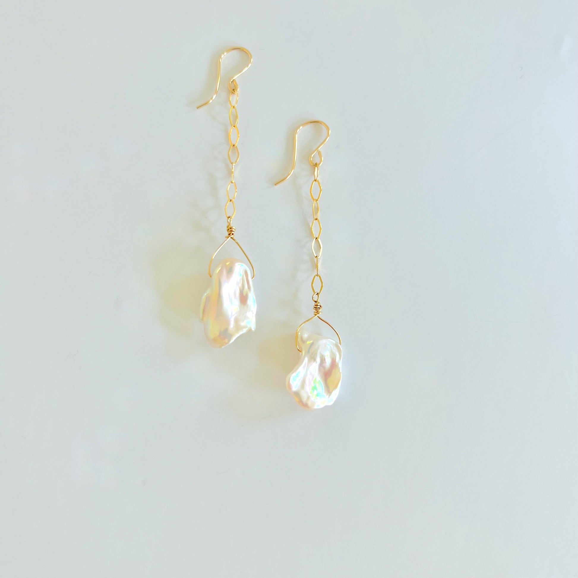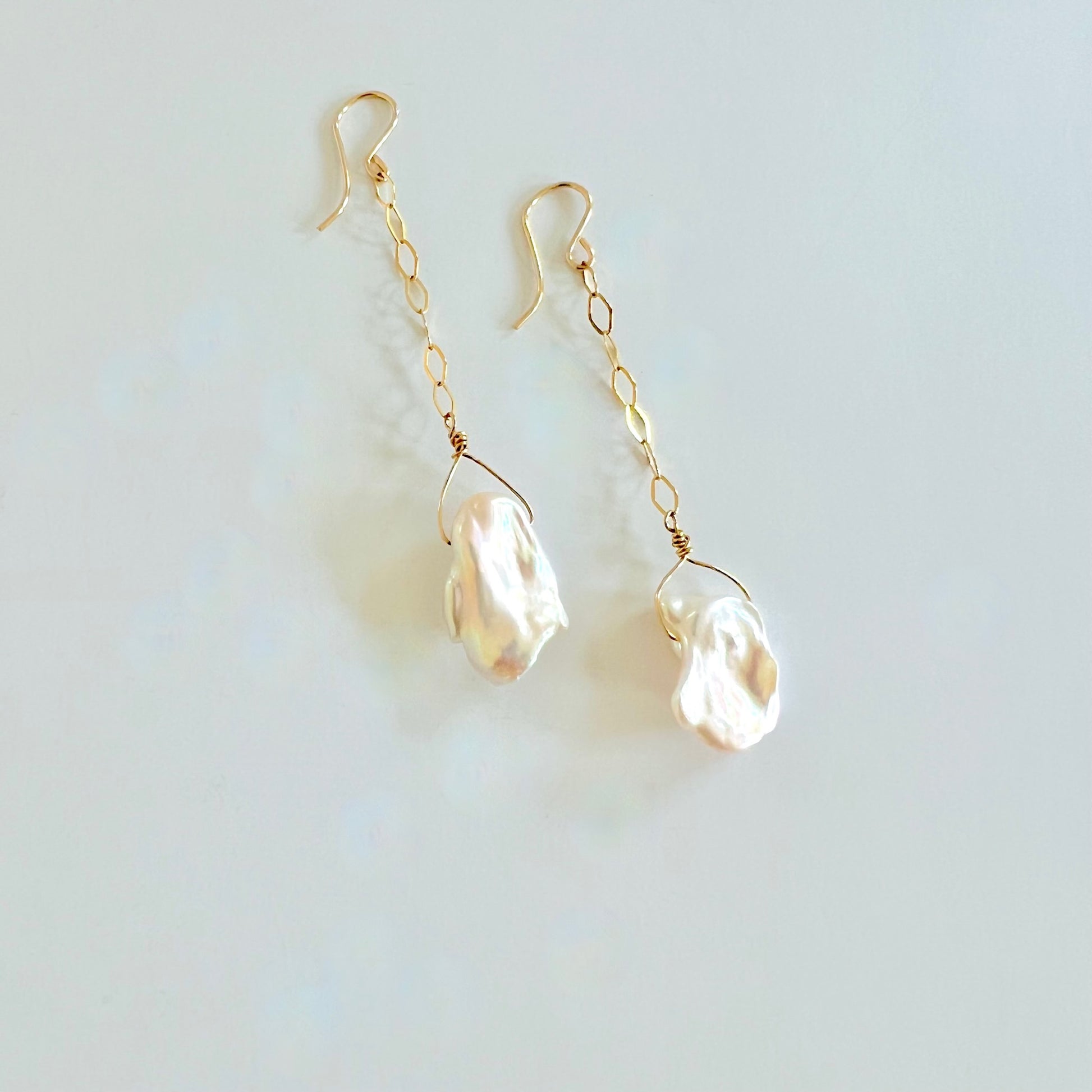 Approximately 3" in length and shown with our Camilla keishi pearl necklace and our hand knotted Elizabeth pearl necklace.